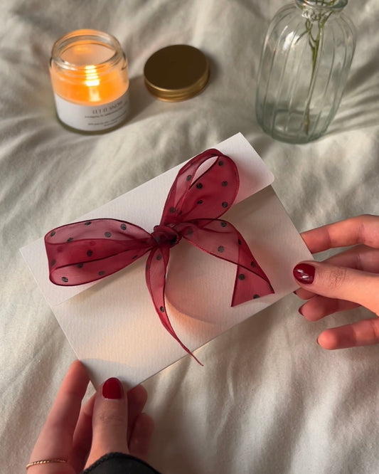 heart + ribbon envelope (sheer burgundy)